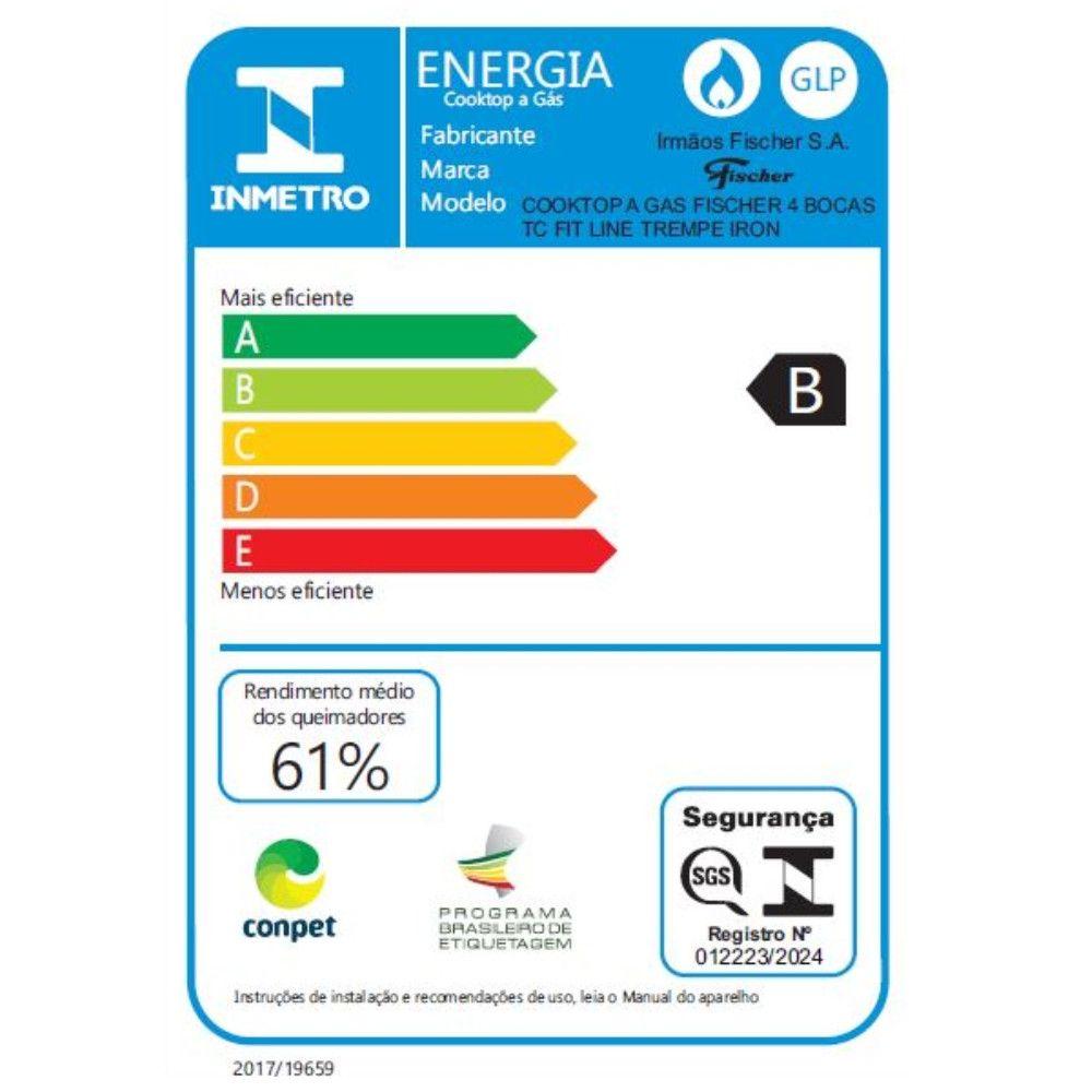 Cooktop a Gás Fischer 4 Bocas Fit Line Tripla Chama Trempe Iron Bivolt