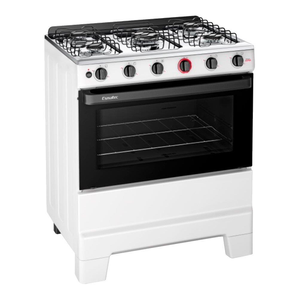 Fogão 5 Bocas Esmaltec F5IAB5121 Ideal Super Mesa em Aço Inox Acendimento Automático Branco Bivolt